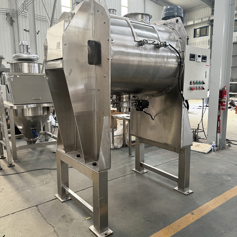 In terms of structural design, the plough mixer exhibits distinct functional characteristics. The U-shaped or trough-shaped cylinder is made of stainless steel with wear-resistant properties, and its inner wall is polished to reduce material adhesion. The top flange for feeding and the bottom butterfly valve for discharging achieve an automated process. The main shaft is equipped with multiple sets of wear-resistant plough blades, and the angles of the two sides' flying blades can be adjusted independently and driven separately. It is also paired with a high-strength alloy steel main shaft and a variable-frequency transmission system. Additionally, labyrinth seals or mechanical seals are combined with dust collection interfaces to effectively control dust leakage, meeting the clean production requirements of industries such as chemical and pharmaceuticals.