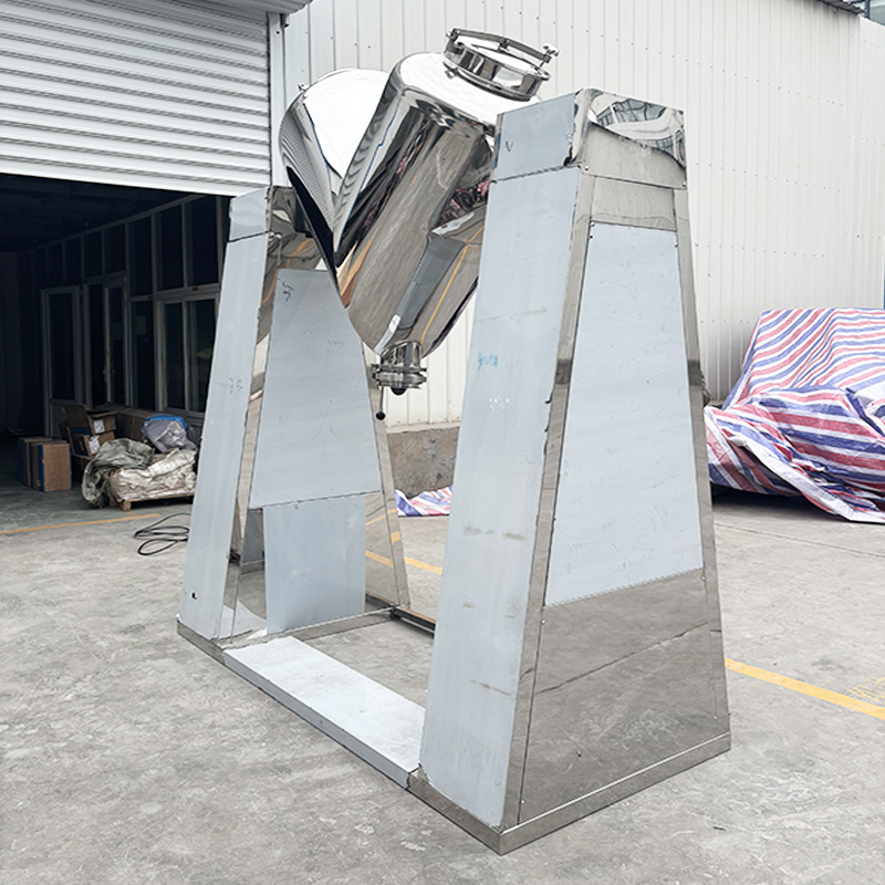 الخلاط من النوع V هو معدات خليط مسحوق عالية الكفاءة وتستخدم عادة. يتكون هيكلها الرئيسي من أسطوانتين غير متماثلتين متصلتين بزاوية على شكل حرف V. أثناء التشغيل ، يتم إعادة تشغيل الخلاط.أسطوانة على شكل V تدور حول المحور المركزي، مما يتسبب في مواد الداخل للفصل باستمرار، وانتشار وتدفق، وبالتالي تحقيق خلط سريع ومتساوية.هذه المعدات مناسبة لخلط خفيفة من المواد الجافة مثل مسحوق والحبيباتيتميز بوقت خلط قصير ، وتوحيد عال من الخلط ، والتنظيف السهل والفراغ الدقيق. يتم استخدامه على نطاق واسع في الصناعات مثل الأغذية والكيماويات.