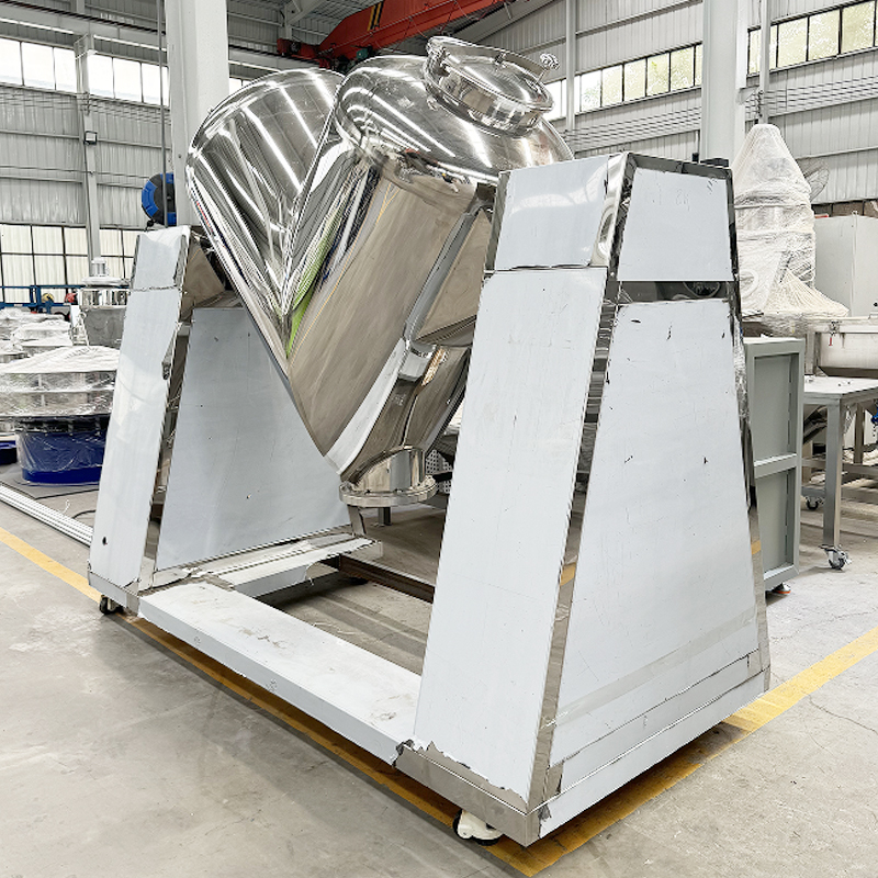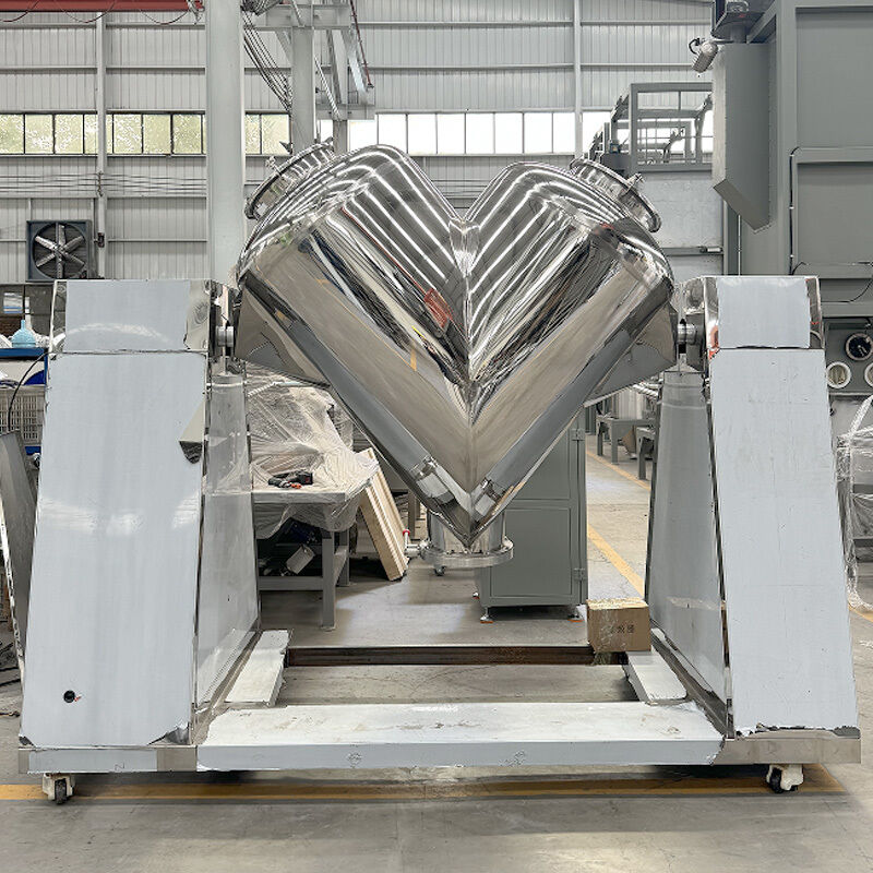 الخلاط على شكل V عبارة عن معدات خلط مسحوق فعالة ومتعددة الاستخدامات. يتكون جسمها الرئيسي من قسمين أسطوانيين غير متماثلين متصلين على شكل حرف V. أثناء التشغيل، تدور الأسطوانات حول محاورها، مما يتسبب في خضوع المواد الداخلية للتجميع والفصل بشكل متكرر، وبالتالي تحقيق خلط سريع وموحد. هذه الآلة لديها هيكل بسيط، سهلة التشغيل، ولها جدار داخلي أملس بدون أي بقايا، مما يجعلها سهلة التنظيف والصيانة. إنها مناسبة بشكل خاص للصناعات ذات المتطلبات الصحية أثناء عملية الخلط. يتم استخدامه على نطاق واسع في الصناعات الدوائية والغذائية والكيميائية، وهو مناسب للخلط الخفيف والفعال لمختلف المساحيق الجافة والمواد الحبيبية.